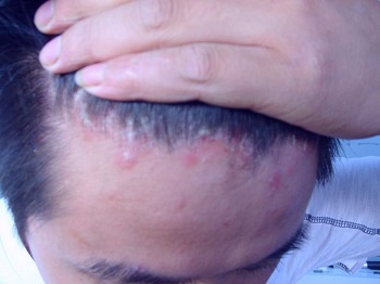 在发病初期,牛皮癣皮损经常出现在头皮,可由头皮向其他部位扩散。头部牛皮癣作为一种局限型牛皮癣,发迹间的头屑明显增多是头部牛皮癣最常见的特点,同时在头皮上会浮现出带状的皮肤损害。皮损有时融合成片,甚至布满整个头皮,鳞屑较厚,毛发常与厚积的鳞屑干燥紧缩在一起,呈束状发。