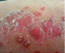 需求留意的是,婴儿型毛囊性寻常型牛皮癣的危害有时相似毛发红糠疹,但其余位置会有垂范寻常型牛皮癣的皮损景象。